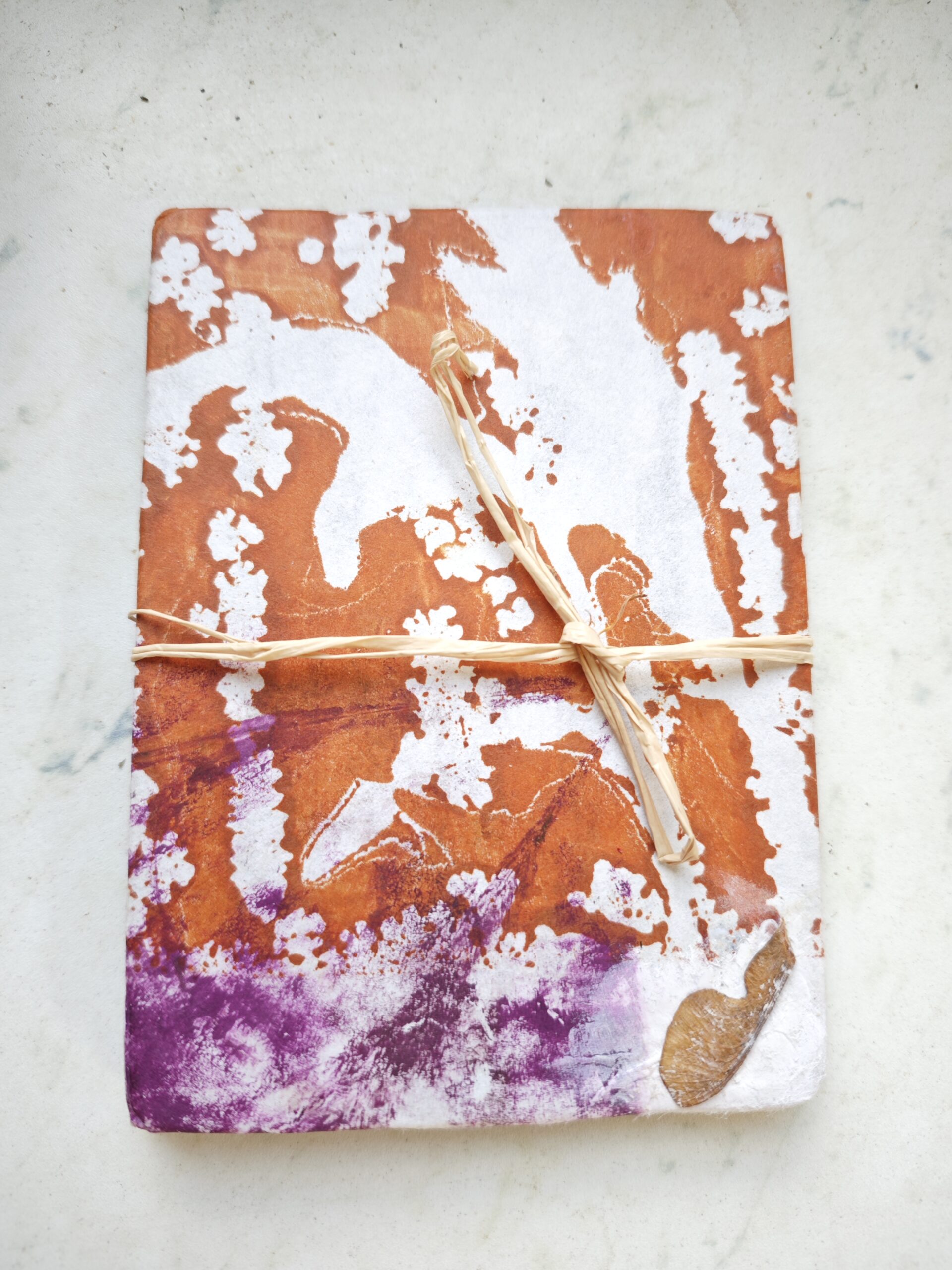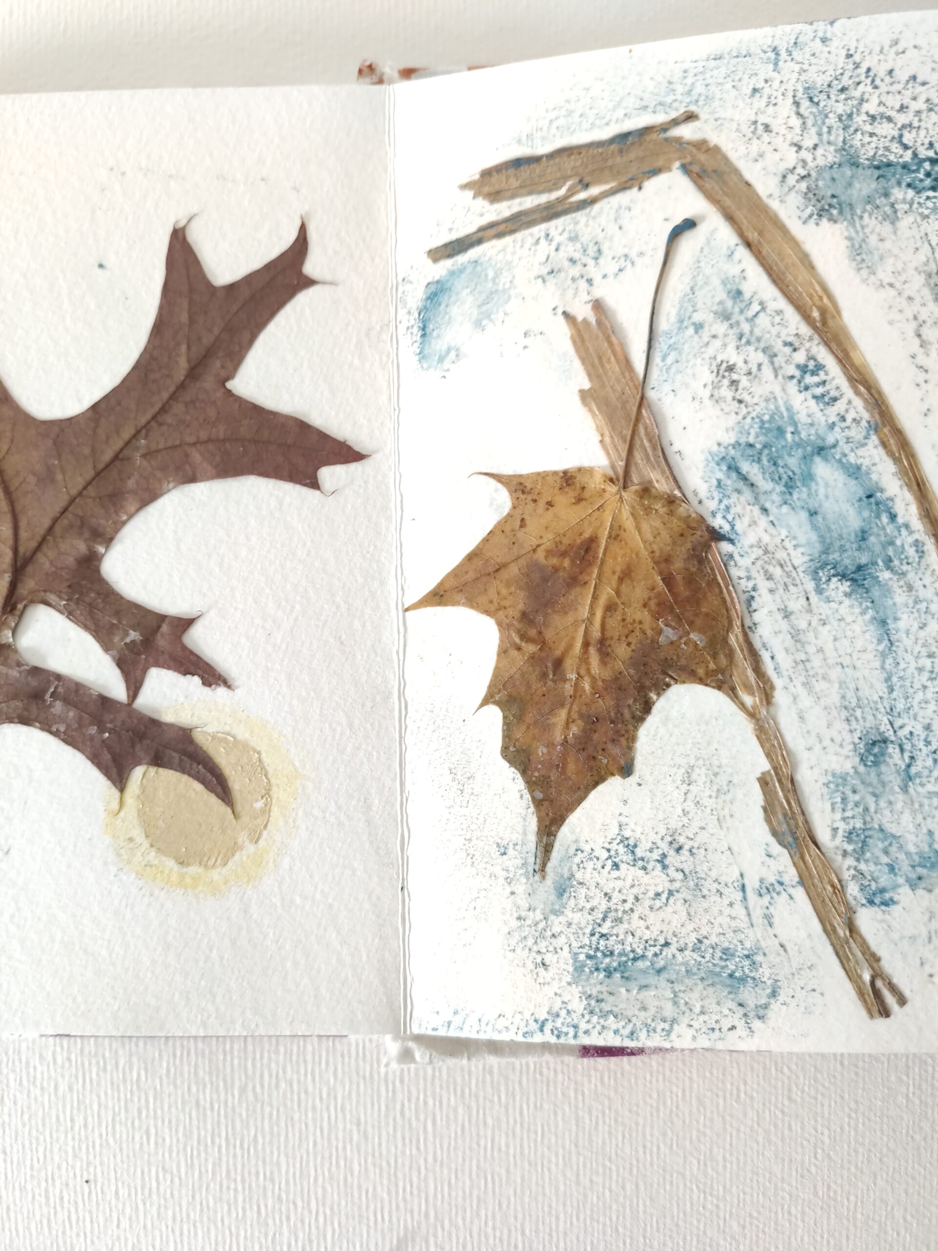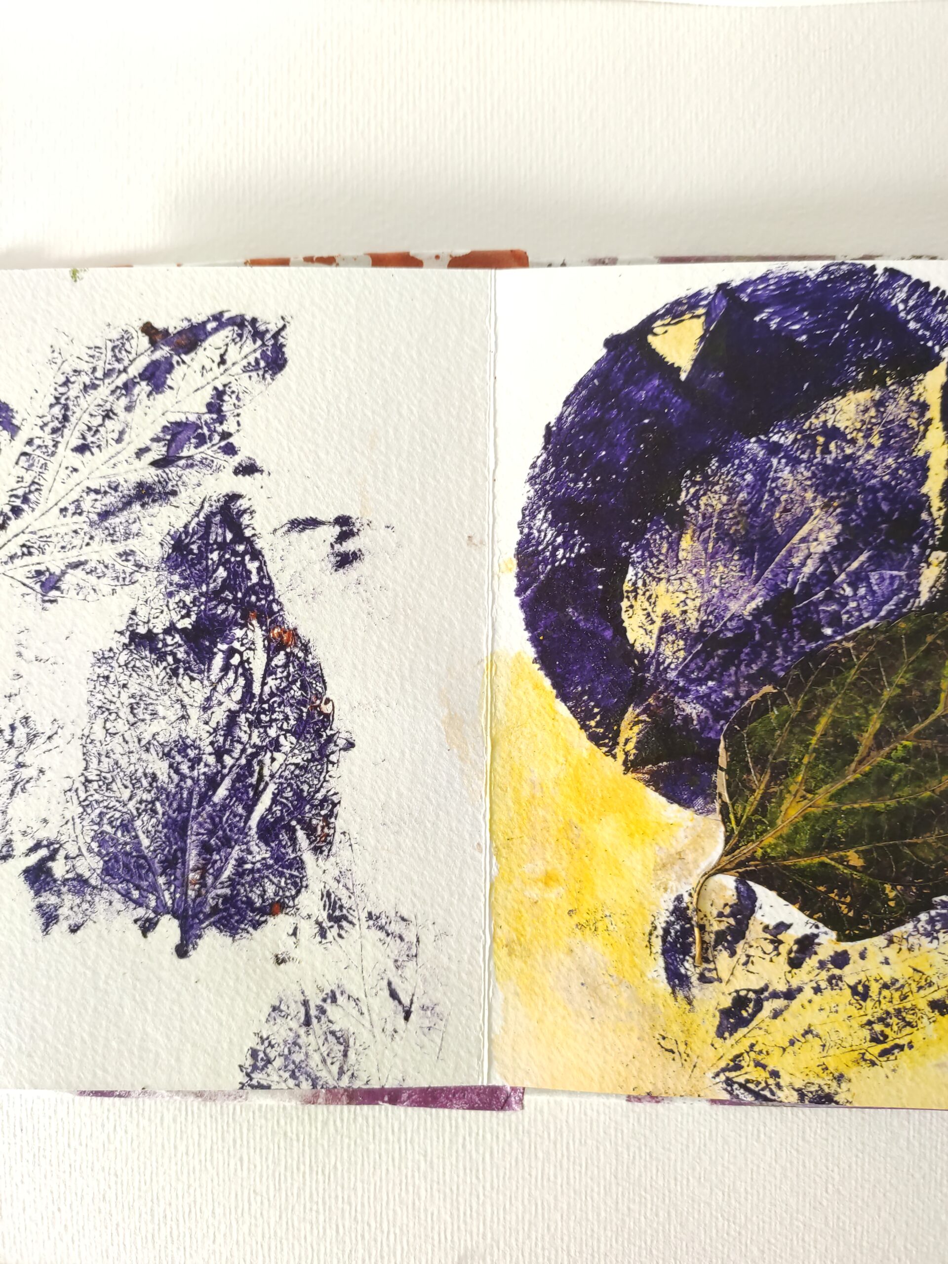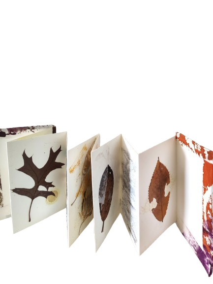 Accordion Book, monotype, acrylic, dried leaves on 300 gsm watercolour paper